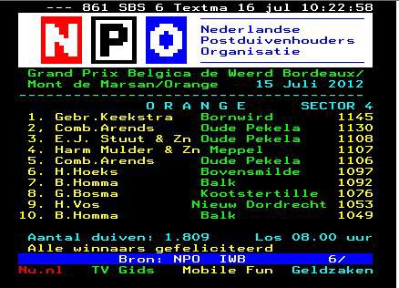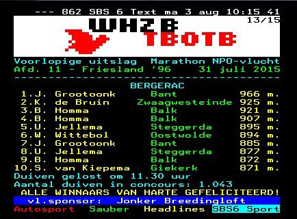 De 57 van de gebroeders Keekstra uit Bornwird een 100% IJnsenduif is 2de van Friesland96 geworden op de marathonvluchten .Op Albi vloog deze doffer een 9de teletext .
